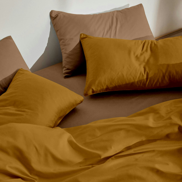 Євро постільна білизна 6 елементів з простирадлом на резинці COPPER