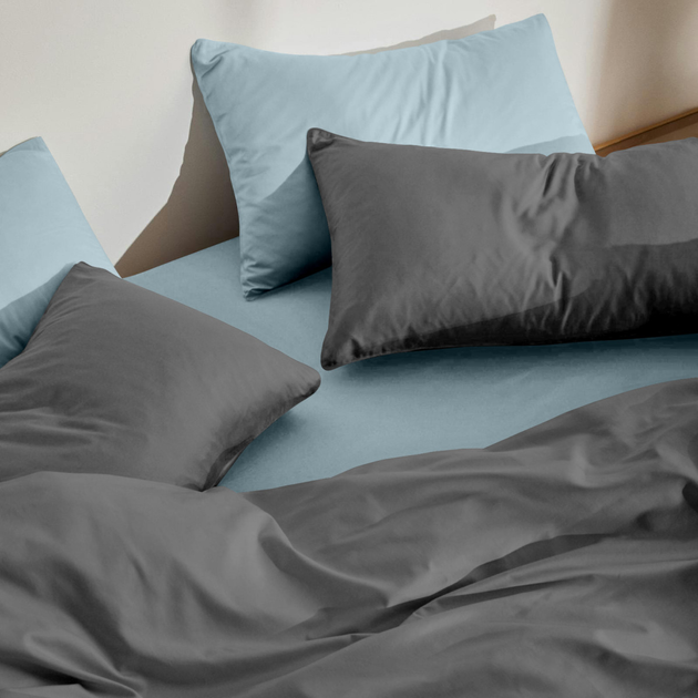 Постільна білизна з гумкою темно-сіра, сімейний розмір 145х215см х2шт, жатка, турецький сатин преміум гофре, наволочки 50х70