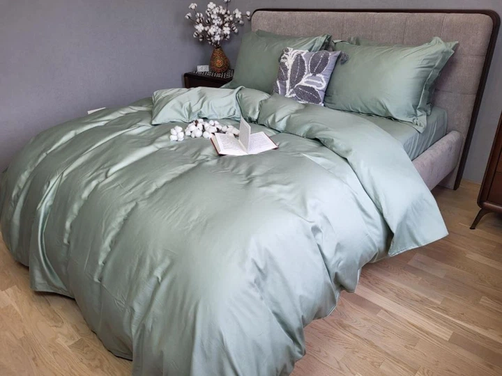Постільна білизна з резинкою Зелений, сатин PREMIUM Полуторний розмір, наволочки 70/70