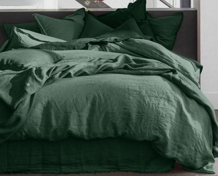 Двоспальний Євро комплект Limasso Exclusive Stonewashed Dark Green Варена Бавовна 200х220 см наволочки 2 х 50х70 см