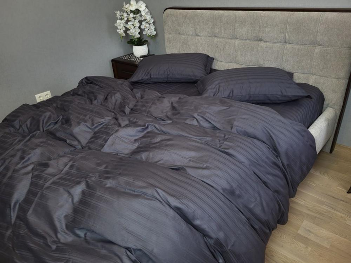 Постільна білизна однотонна Графіт, сімейний розмір 145х215см х2шт, турецький сатин страйп преміум, мульти смужка, наволочки