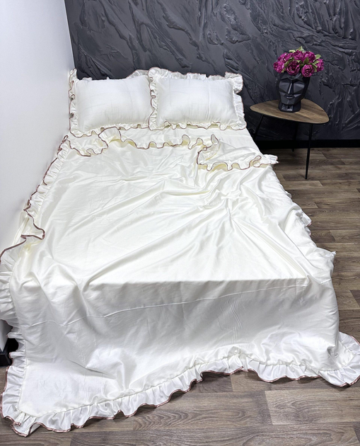 Постільна білизна з резинкою Молочний з рюшею, ранфорс Евро розмір, наволочки 50/70
