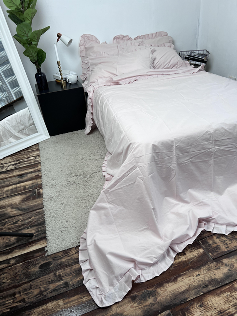 Комплект постільної білизни з рюшами сімейний 220х240 см рожевий
