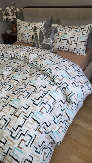 Постільна білизна з гумкою Дрейф DUO двоспальний розмір 180х215 см, жатка, турецький ранфорс гофре , наволочки 50х70, 100 б