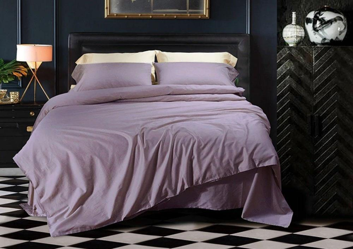 Постільна білизна з резинкою Світло-фіолетовий, сатин PREMIUM Евро розмір, наволочки 70/70