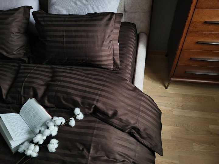 Постільна білизна з резинкою CHOCOLATE, сатин страйп PREMIUM 2/2см Евро розмір, наволочки 70/70