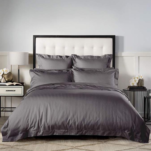 Комплект постільної білизни MERISET 120090066 Двоспальний Сатин страйп Антрацит