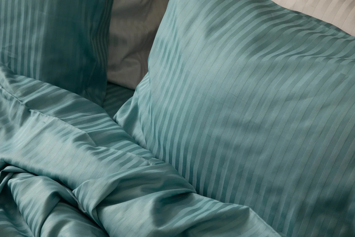 Постільна білизна “Сапфірове Небо” з мерсеризованого страйп-сатину – євро, простирадло звичайне, наволочки 5070, у мішечку