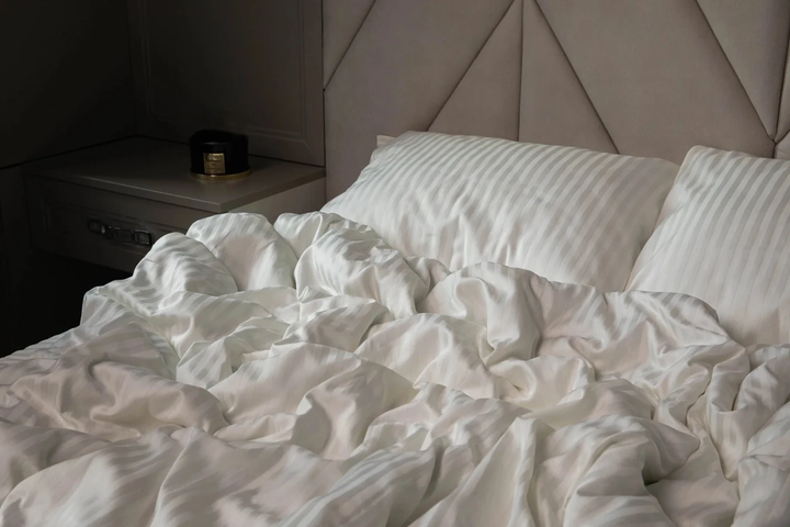 Постільна білизна "Слонова Кістка" зі страйп-сатину - євро, простирадло звичайне, наволочки 5070, в мішечку