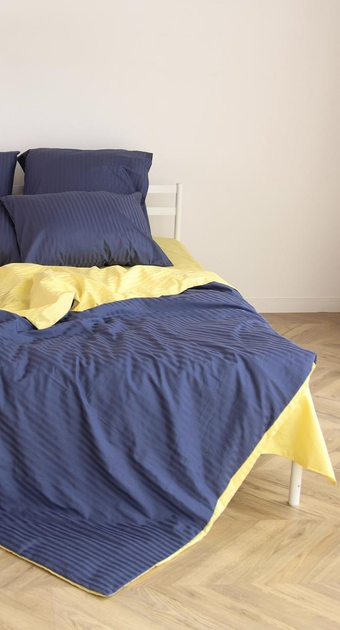 Постільна білизна "LeLIT", Страйп-сатин, Жовто-Синій, Двоспальний, SS-3036
