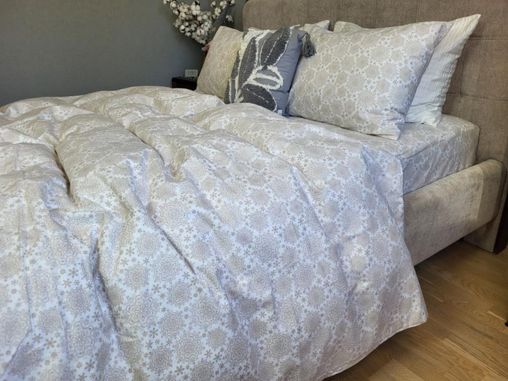 Постільна білизна з резинкою Мережка беж, фланель(байка) Полуторний розмір, наволочки 70/70