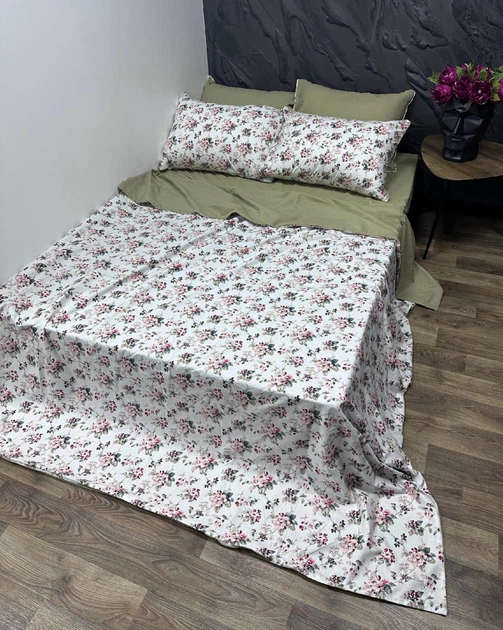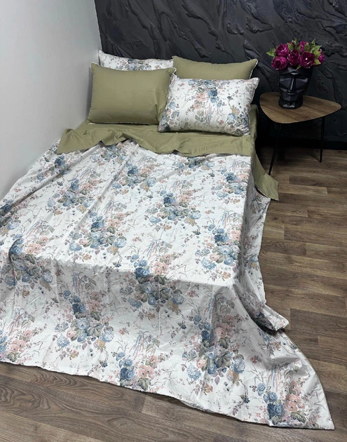 Комплект постільної білизни Spring white сімейний 220х240 см оливковий