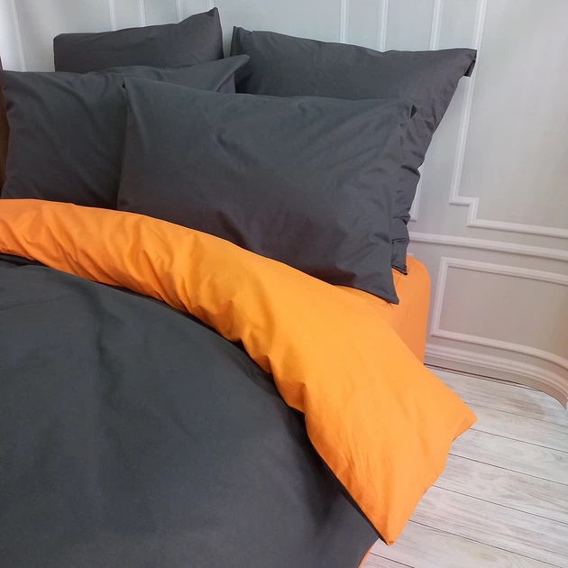 Постільна Білизна Дует Антрацит/помаранчевий Ранфорс Сімейний на резинці (226748)
