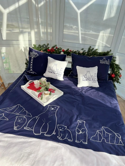 Комплект постільної білизни Mensal North Pole з вишивкою зі штучним хутром двоспальний 180х215 темно-синій