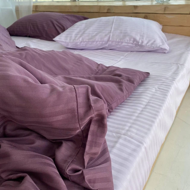 Постільна білизна Лаванда+Фіолетовий страйп сатин PREMIUM Евро розмір, наволочки 70/70