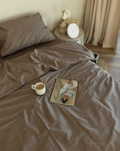 Постільна білизна Какао, сатин PREMIUM Евро розмір, наволочки 50/70