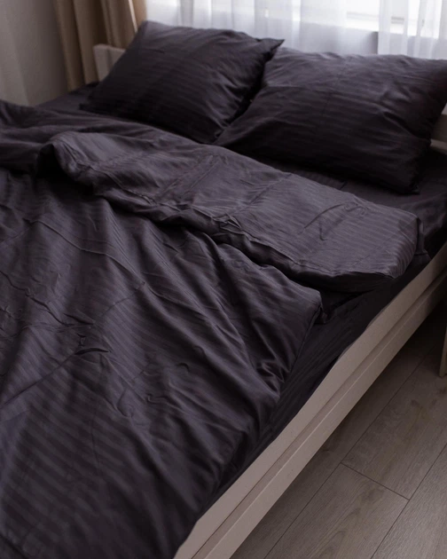 Постільна білизна Графіт страйп сатин PREMIUM Евро розмір, наволочки 50/70