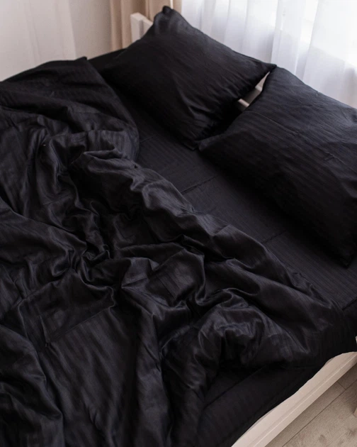 Постільна білизна Чорний страйп сатин PREMIUM Евро розмір, наволочки 70/70