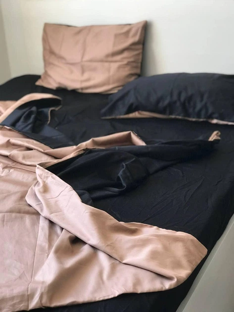 Постільна білизна Карамель + чорний, сатин PREMIUM Евро розмір, наволочки 50/70