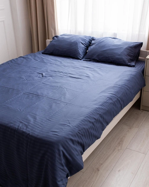 Постільна білизна Синій страйп сатин PREMIUM Евро розмір, наволочки 50/70