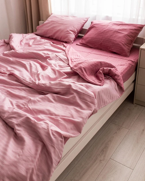 Постільна білизна Мульти страйп сатин пудрова роза, PREMIUM Евро розмір, наволочки 70/70
