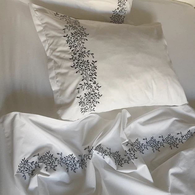 Комплект постільної білизни Cozy білий з вишитими сірими гілками Односпальний 140*200 см простирадло без гумки