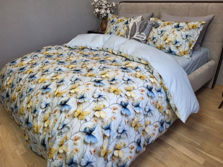 Постільна білизна з резинкою Метелики, ранфорс Сімейний розмір, наволочки 50/70