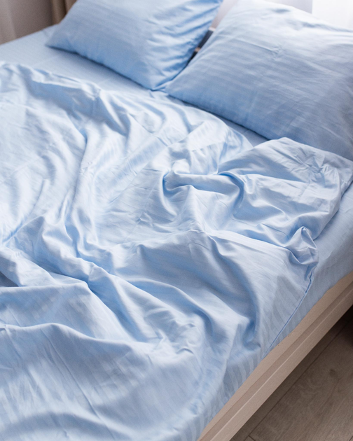 Постільна білизна Голубий страйп сатин PREMIUM Полуторний розмір, наволочки 50/70