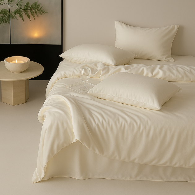 Комплект постільної білизни Новасон Євро 200х220 наволочки 2х50х70 Сатин Преміум Молочний