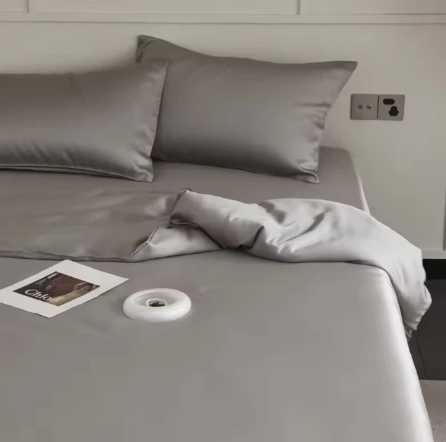 Комплект постільної білизни Новасон Євро 200х220 простирадло на резинці 160*200 наволочки 2х50х70 Сатин Преміум Сірий