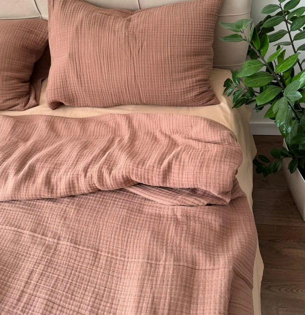 Комплект з преміального 4-х шарового мусліну LavSon Євро 200х220 простирадло 240х230 ранфорс Мигдаль