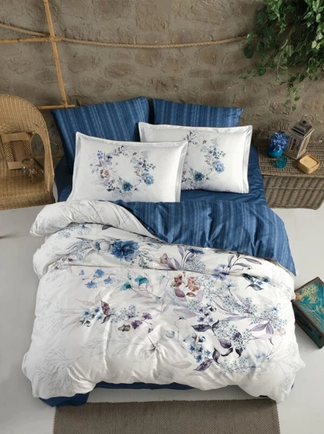 Постільна білизна євро розмір La Romano Premium Satin Floral Blue