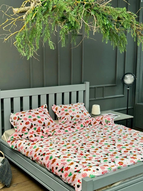 Постільна білизна з гумкою новорічна плюшева Пряник, сімейний розмір, наволочки 50х70, плюш