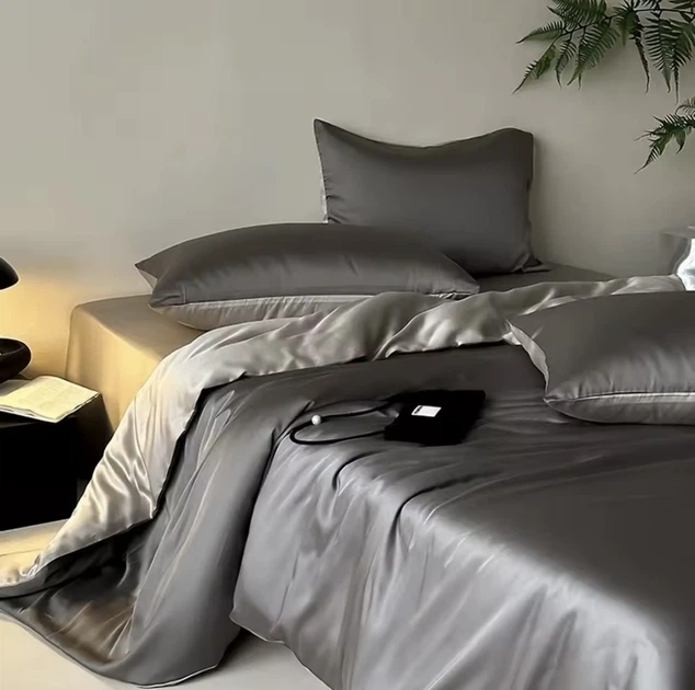 Комплект постільної білизни Новасон Сімейний 2*150х220 наволочки 2х70х70 Сатин Преміум Графітовий з сірим