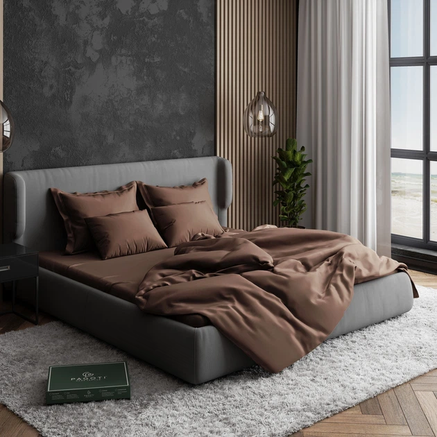 Комплект постільної білизни сатин-люкс PAGOTI Minimal шоколадний (полуторний/70х70)
