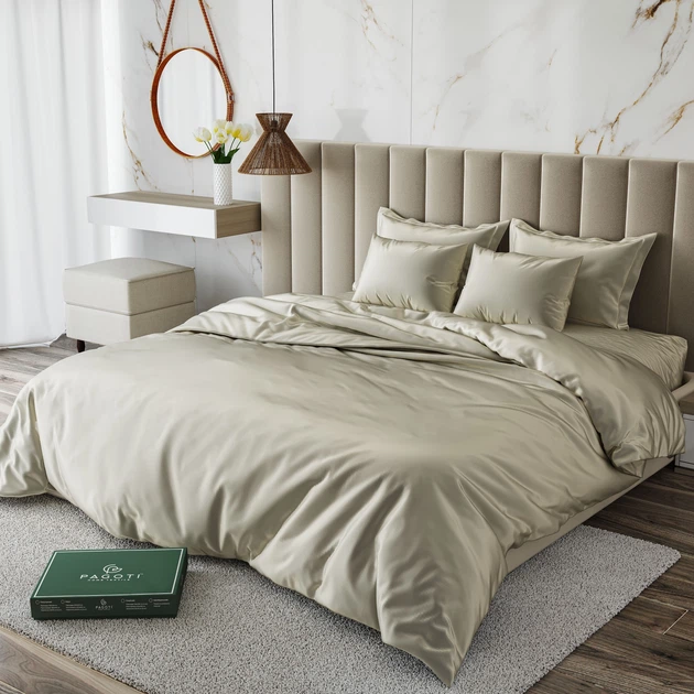 Комплект постільної білизни сатин-люкс PAGOTI Minimal бежевий (полуторний/70х70)