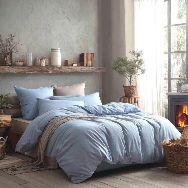 Комплект постільної білизни Almira Mix Варена Бавовна Преміум Блакитний Полуторний