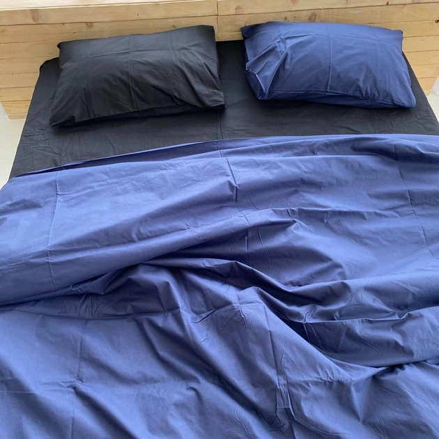 Постільна білизна з резинкою Синій + чорний, ранфорс Сімейний розмір, наволочки 50/70