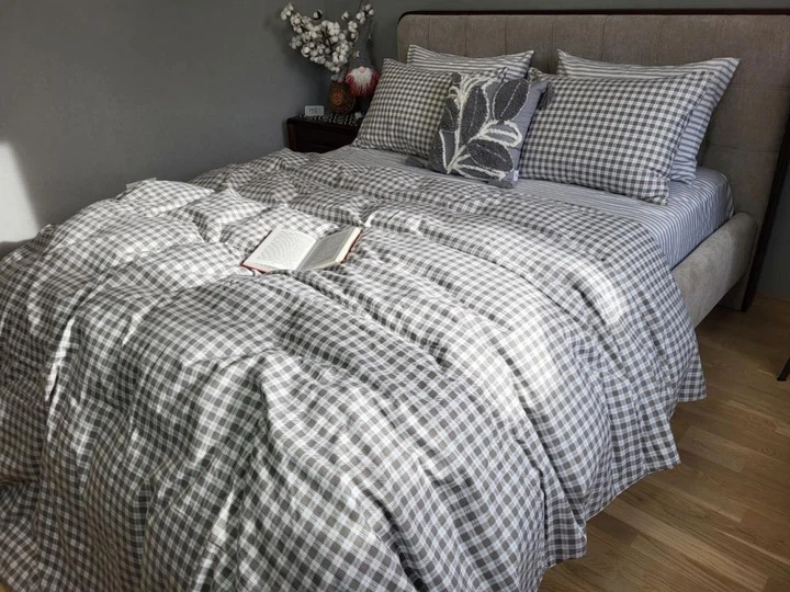 Постільна білизна з гумкою Марсель сірий DUO сімейний розмір 145х215см х2шт, жатка, турецький ранфорс гофре , наволочки 70х7