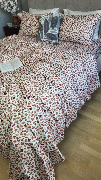 Постільна білизна тепла з гумкою Багряна осінь, сімейний розмір 145х215см х2шт, турецька фланель (байка), наволочки 70х70, 1