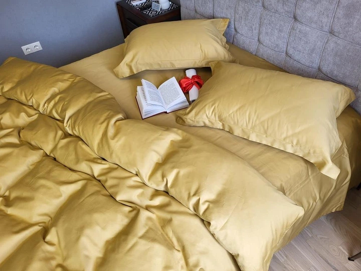 Постільна білизна з гумкою однотонна Gold, сімейний розмір 145х215см х2шт, турецький сатин преміум, наволочки 70х70, 100 бав