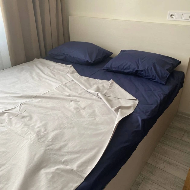 Постільна білизна з резинкою Сірий+синій ранфорс Сімейний розмір, наволочки 70/70