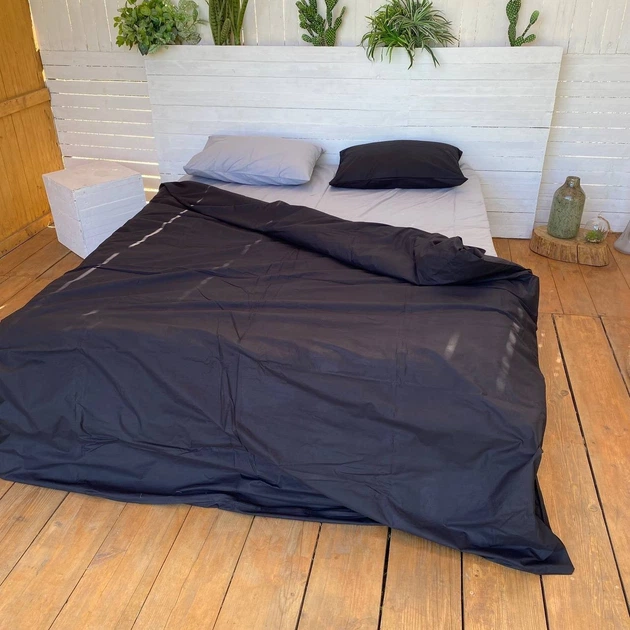 Постільна білизна з резинкою Сірий+чорний ранфорс Сімейний розмір, наволочки 50/70