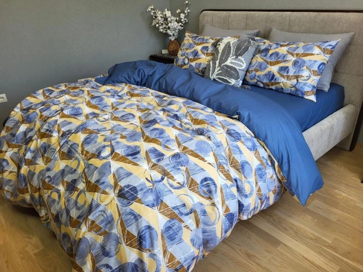 Постільна білизна з резинкою Оазис синій, ранфорс Сімейний розмір, наволочки 50/70