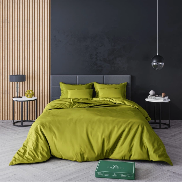 Комплект постільної білизни сатин-люкс PAGOTI Minimal оливковий (king size/70х70)