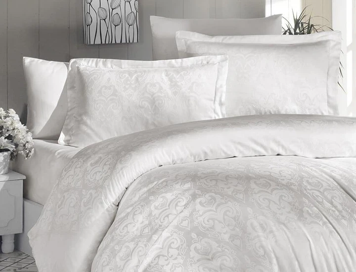Двоспальний Євро комплект First Choice Misra Beyaz Жаккард 200х220 см наволочки 2 x 50х70 см, 2 x 70х70 см