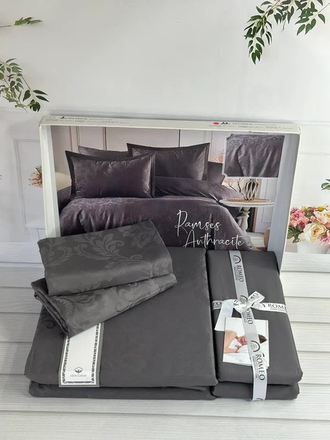Постільна білизна Romeo home Ramses Grey жаккардова сатинова Євро розмір антрацит