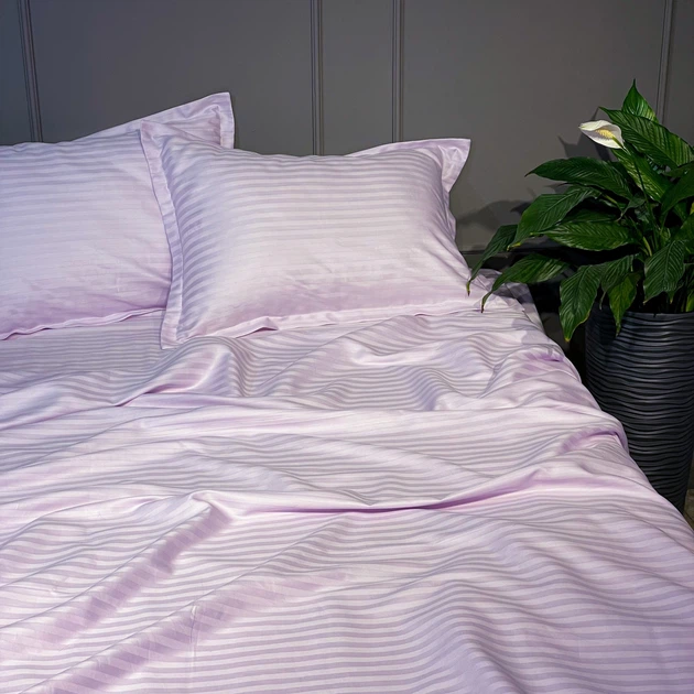 Однотонна постільна білизна Преміум MLS Сатин Страйп комплект Сімейний 150*220/70*70 лиловий