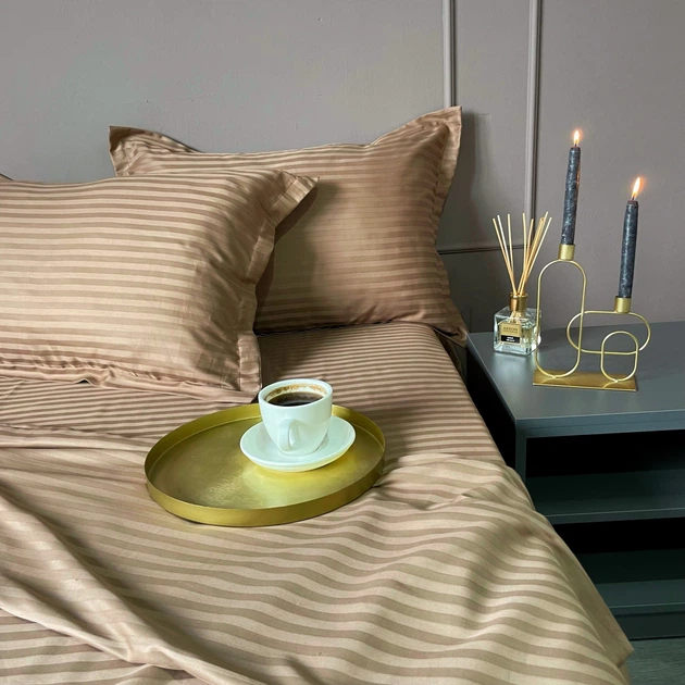 Однотонна постільна білизна Преміум MLS Сатин Страйп комплект Сімейний 150*220/70*70 капучино