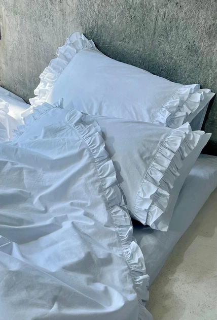 Комплект постільної білизни двоспальний (180*200) з Washed cotton, колір білий, рюш